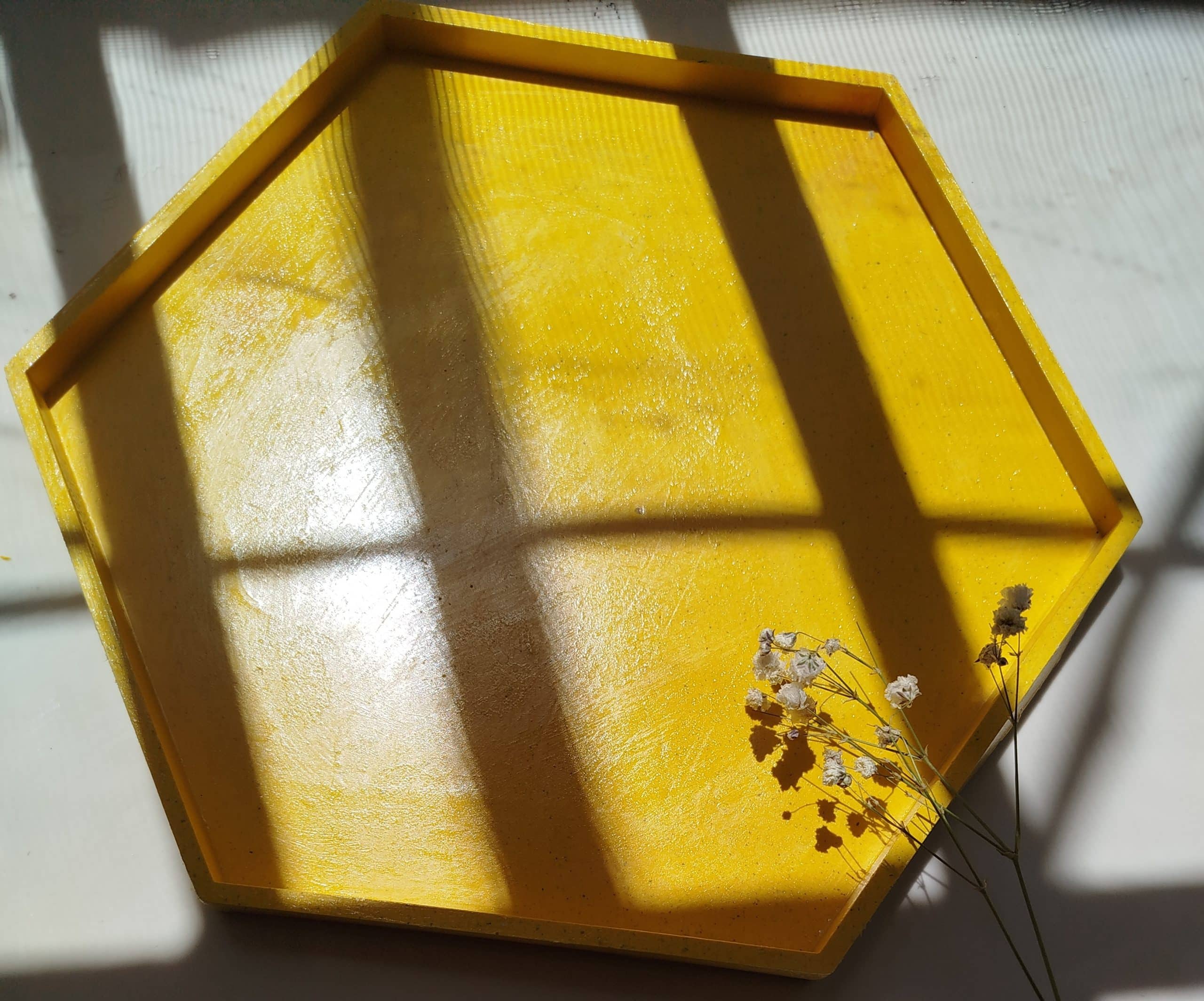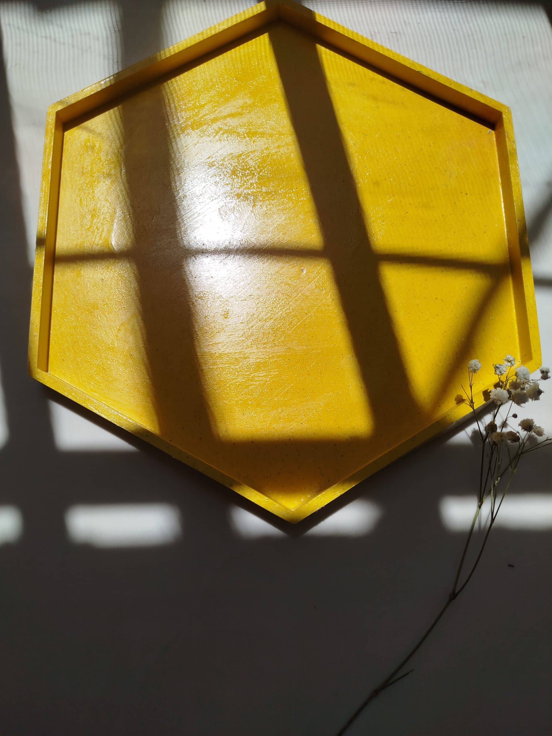 این سینی شش ضلعی علاوه بر کاربرد اصلی‌اش، می‌تواند به‌عنوان پایه‌ی دکوراتیو برای قرار دادن شمع‌ها، گلدان‌های کوچک، کتاب‌ها یا حتی به‌عنوان تزیین مرکز میز استفاده شود. همچنین می‌تواند به‌عنوان سینی آرایشی برای سازمان‌دهی لوازم آرایشی یا جواهرات شما نیز کاربرد داشته باشد. اگر به دنبال یک سینی شیک و کاربردی برای دکوراسیون منزل، محل کار یا هدیه‌ای خاص هستید، سینی بزرگ شش ضلعی پذیرایی انتخابی عالی برای شماست!